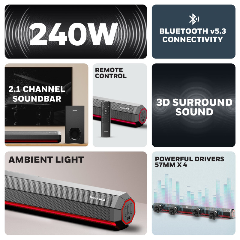 • 57mm*4 Soundbar Drivers offers an immersive audio & gaming experience