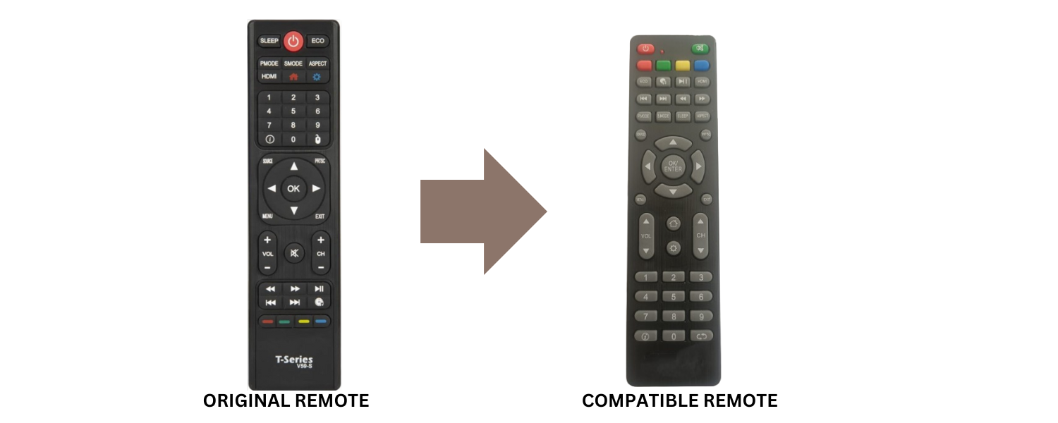 • ORIGINAL REMOTE IMAGE IS DIFFERENT BUT IT IS SURE COMPATIBLE WITH T-SERIES VERIFIED BY US.